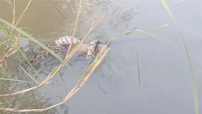ಹೆಬ್ಬಾವು ಮತ್ತು ಕೋತಿ ನೋಡಿದ ಮುದಿಯಪ್ಪ ಮೇಕಾಳಿ ಮತ್ತು ಇತರರು ಕೋತಿ ರಕ್ಷಿಸಲು ಮುಂದಾದರು. ಕೋಲುಗಳನ್ನು ಬಳಸಿ ಹೆಬ್ಬಾವಿನ ಹಿಡಿತ ತಪ್ಪಿಸಲು ಯತ್ನಿಸಿದರೂ, ಅಷ್ಟೊತ್ತಿಗೆ ಕೋತಿ ಪ್ರಾಣ ಕಳೆದುಕೊಂಡಿತ್ತು. ಜನರಿಗೆ ಹೆದರಿದ ಹೆಬ್ಬಾವು ಕಾಲುವೆ ನೀರಿನಲ್ಲಿ ಮಾಯವಾಗಿತ್ತು.