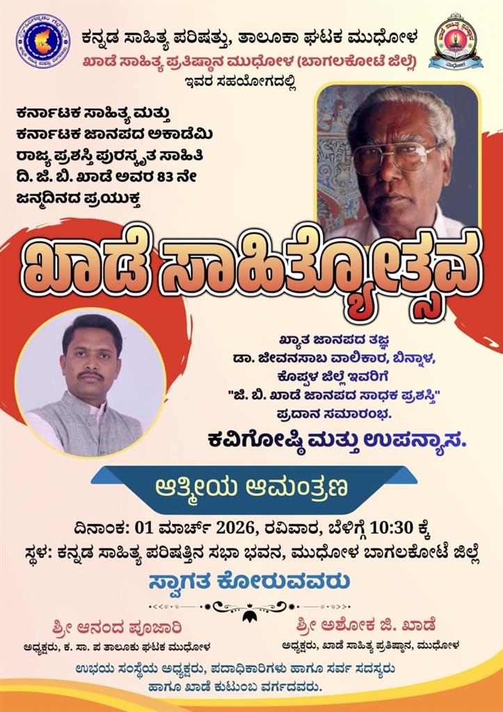 ಕೊಪ್ಪಳ : ಬಾಗಲಕೋಟೆ ಜಿಲ್ಲೆ ಮುಧೋಳದ ಖಾಡೆ ಸಾಹಿತ್ಯ ಪ್ರತಿಷ್ಠಾನ ವತಿಯಿಂದ ಸಾಹಿತಿ ದಿ. ಜಿ. ಬಿ. ಖಾಡೆ ಸ್ಮರಣಾರ್ಥ ನೀಡಲಾಗುವ ‘ಜಿಬಿ ಖಾಡೆ ಜಾನಪದ ಸಾಧಕ ಪ್ರಶಸ್ತಿ’ ಗೆ ಕೊಪ್ಪಳ ಜಿಲ್ಲೆಯ ಶಿಕ್ಷಕ, ಅಂತರಾಷ್ಟ್ರೀಯ ಜಾನಪದ ಗಾಯಕ ಹಾಗೂ ಜಾನಪದ ಅಕಾಡೆಮಿ ಸದಸ್ಯ ಡಾ. ಜೀವನಸಾಬ ವಾಲಿಕಾರ್ ಆಯ್ಕೆಯಾಗಿದ್ದಾರೆ.